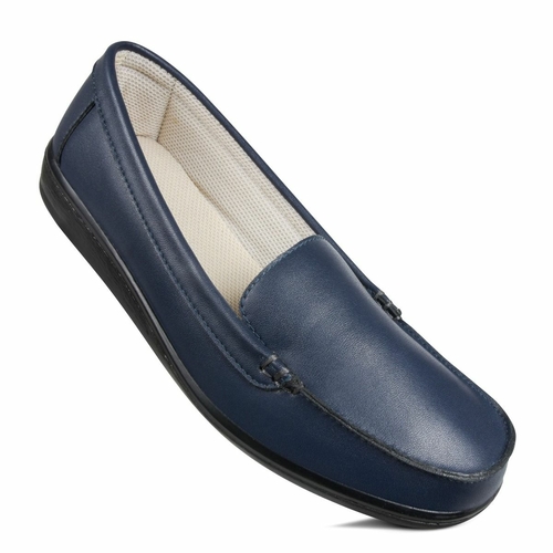 Cotton blend synthetic leather loafers for women.