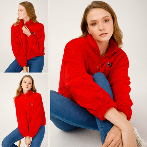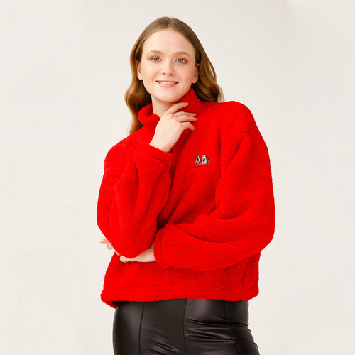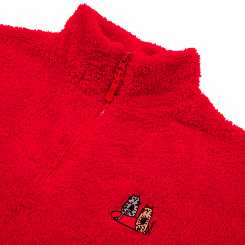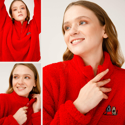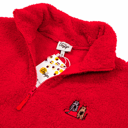 Biggdesign soft fleece jacket has a durable 100% polyester construction with warm, soft, nice comfort features. This fleece pullover has an exceptionally silky, plush fleece composed of the softest materials for your warmth and comfort. It is silky smooth inside and outside to keep you very comfortable while you do yoga, take the dog for a walk, winter running or sipping tea next to the fire on a cold day. It is soft on the skin, stylish and looking good. The fleece jacket women is fashionable enough to be worn casually and durable enough for any mission outside. It is breathable and will keep you warm without overheating. You can wear as either a stand-alone layer or it is lightweight enough to wear under a rain or wind jacket without looking bulky. In addition to keeping warm, this pullover sweatshirt is decorated with colorful details. The Cat pattern is created by artist Zeynep Pak that’s in harmony with the cut and the design. Other features include high neck with 1/4 zipper closure, elastic waist and elastic long sleeves to hug your body. This fleece pullover jacket is available in 3 different colors and patterns. They are machine washable. SIZE AND FIT: Modern Classic/Regular Fit. The model size is S. Height: 1.77, chest: 32 in – 83 cm, waist: 24 in – 61 cm, hips: 25 in – 90 cm.