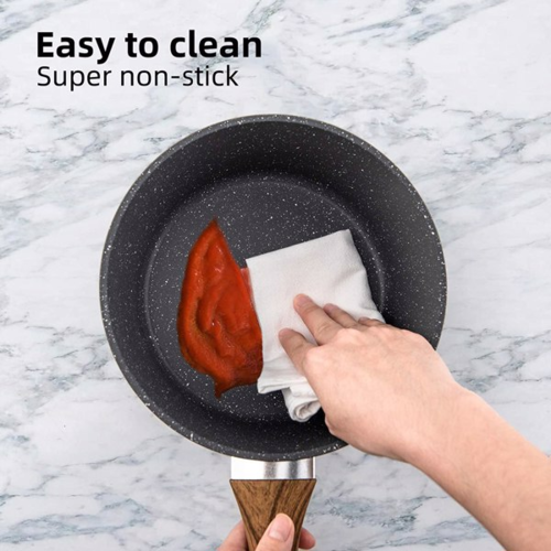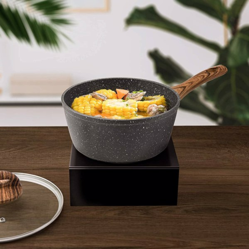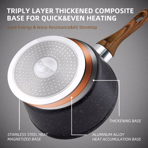 4. Wood Effect Bakelite Handle has a safe and heat‑proof designed, heat insulation and heat protection, effectively preventing burns during use.